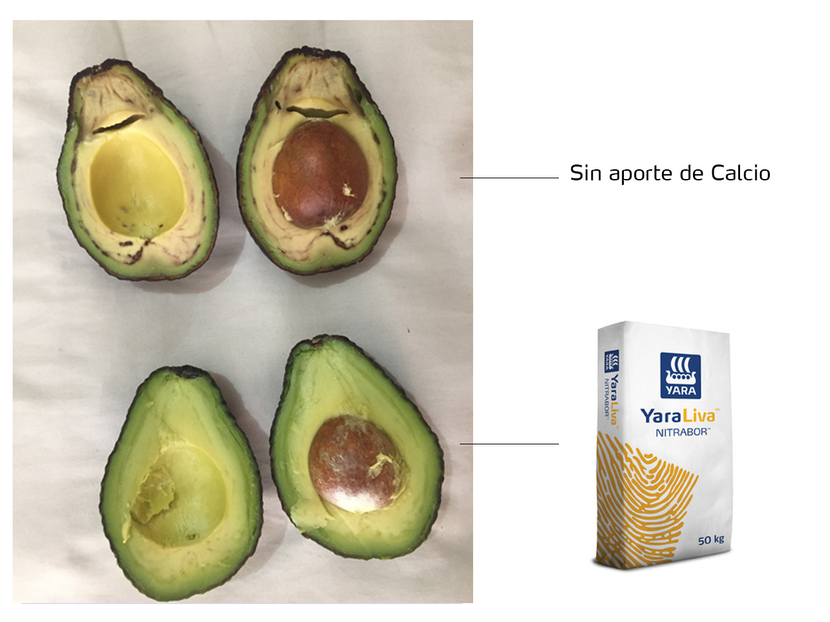 Dentro de los nutrientes que ayudan a tener mejor calidad de fruta, se encuentra el Calcio. Al ser un elemento estructural, brinda fortaleza al aguacate, lo que derivará en menos aborto de fruta, más resistencia a daños por patógenos, mayor calidad post cosecha y mayor vida de anaquel.