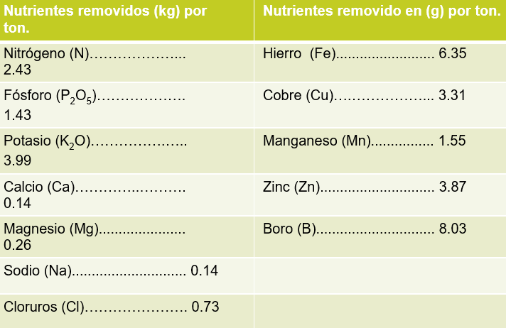 Nutrientes removidos por tonelada producida: