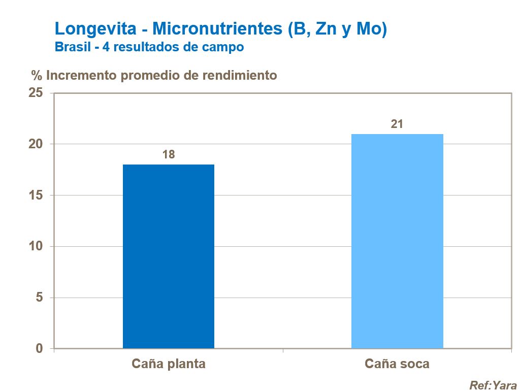 Aplicados en el surco a la caña planta y en aplicaciones foliares coincidentes con el rebrote; el boro, zinc y molibdeno han mejorado el desarrollo de raíces y brotes con regularidad generando mejor vigor, establecimiento y rendimiento de la planta.